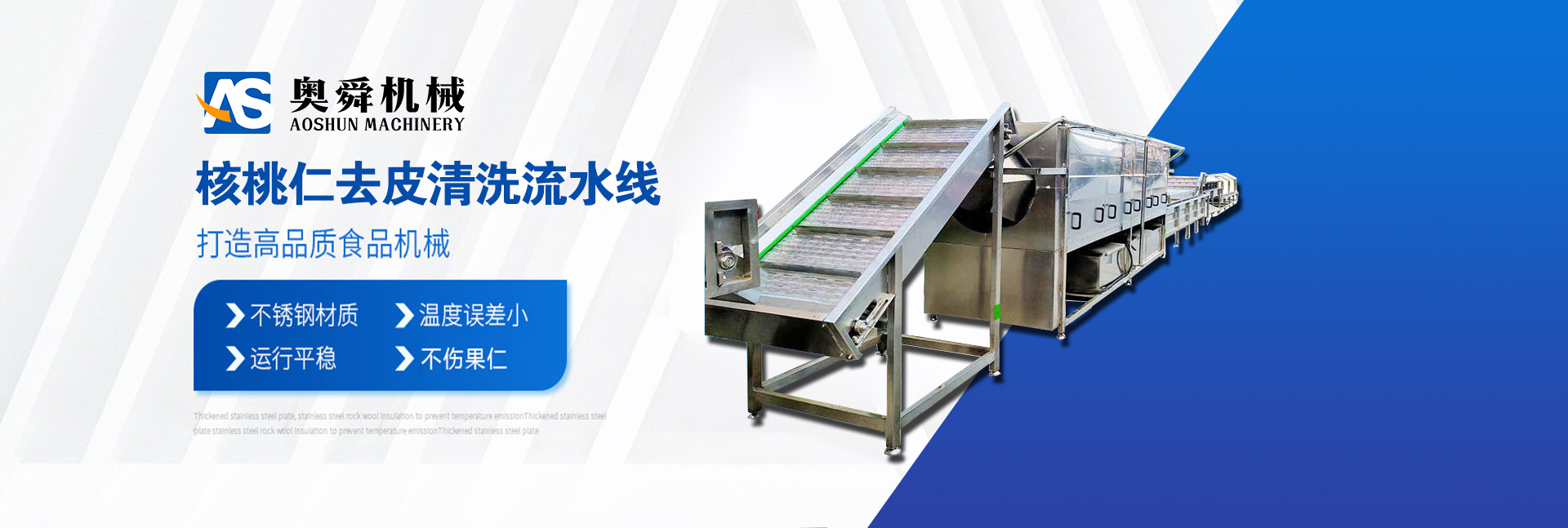 奧舜機(jī)械 【核桃仁去皮機(jī)】打破了核桃仁深加工過程中的困擾,純物理脫皮方法,專門針對(duì)核桃仁表皮的沖洗,代替了傳統(tǒng)的化學(xué)泡制去皮,使產(chǎn)品更安全放心,連續(xù)式工作,操作簡(jiǎn)單,去皮率高、破損率低,自動(dòng)化程度高,節(jié)省人工,可配套烘干箱使用。